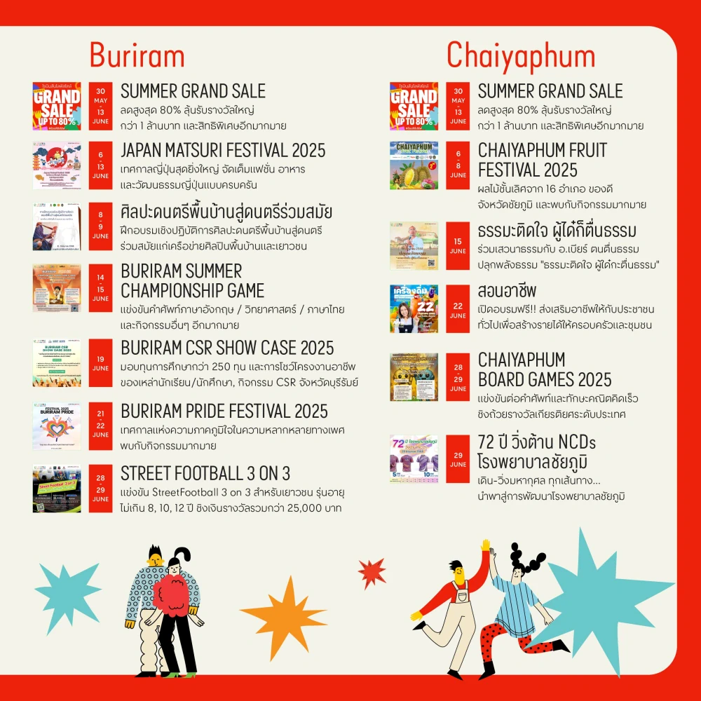 6 มิ.ย. 68 - 8 มิ.ย. 68 อิ่มอร่อยกับงานผลไม้ประจำจังหวัด Chaiyaphum Fruit Festival 2025 รวบรวมของดีจากทั้ง 16 อำเภอ พร้อมกิจกรรมสุดสนุก