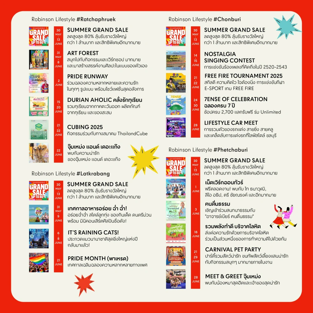 โรบินสันไลฟ์สไตล์ เสิร์ฟความสุขตลอดเดือนมิถุนายนนี้ พร้อมสนุกไปกับอิเวนต์มากมาย และปลุกพลังการใช้จ่ายไปกับ แคมเปญ “Robinson Lifestyle Summer Grand Sale 2025” ทุกสาขาทั่วประเทศไทย