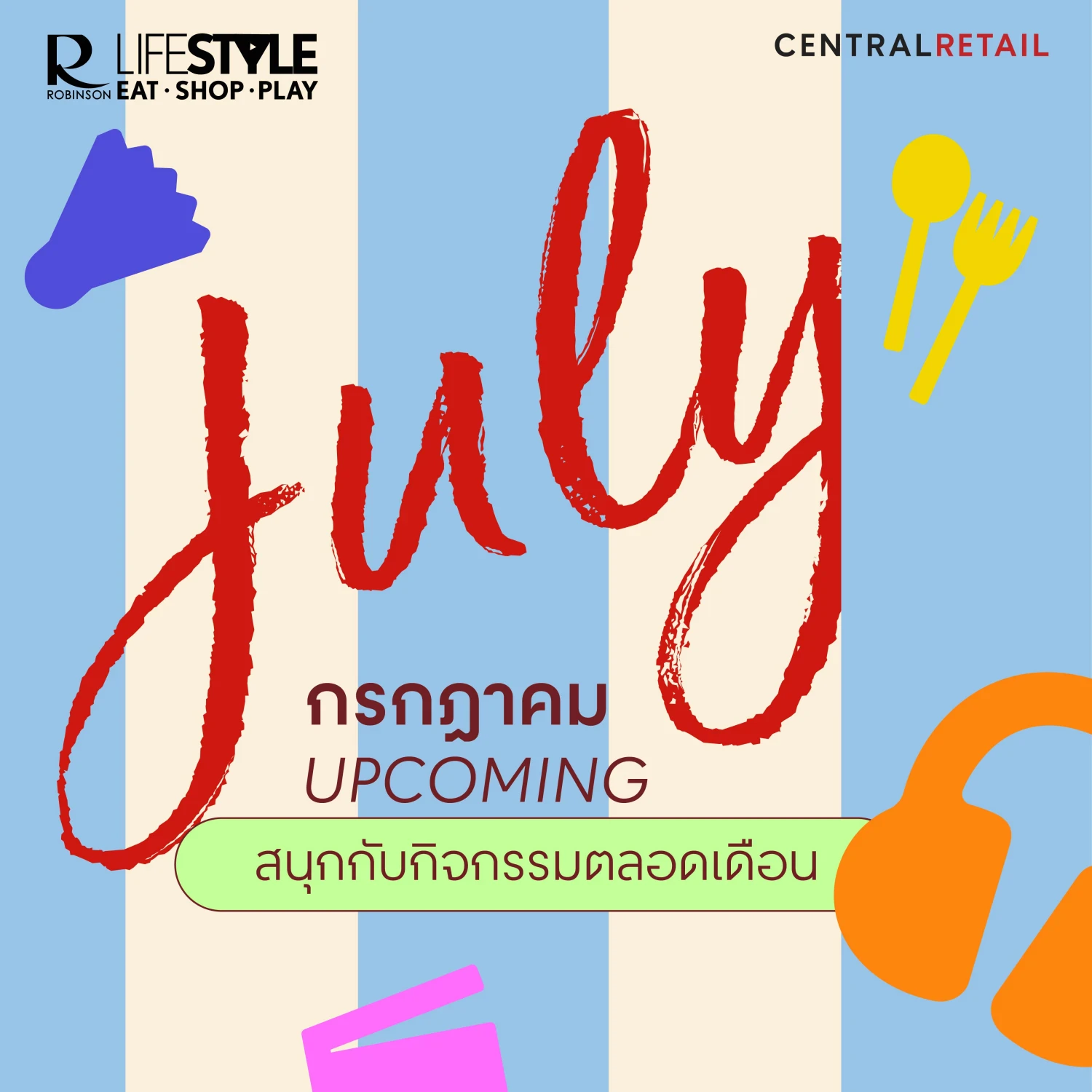 ศูนย์การค้าโรบินสันไลฟ์สไตล์ ในเครือเซ็นทรัล รีเทล ชวนทุกครอบครัว คู่รัก และกลุ่มเพื่อน ออกมาสัมผัสประสบการณ์ความสุขและความสนุกได้แบบ Non-stop ตลอดเดือนกรกฎาคมนี้ กับกิจกรรมสุดพิเศษมากกว่า 100 กิจกรรมทั่วประเทศ ที่จัดเต็มทุกไลฟ์สไตล์ ทั้งกิจกรรมสายกิน สายเที่ยว สายช้อป สายเด็กและครอบครัว และกิจกรรมพิเศษของแต่ละชุมชน พลาดไม่ได้! กับอิเวนต์ประจำสาขาที่คัดสรรมาให้ร่วมสนุกกันอย่างจุใจในทุกสัปดาห์ เพื่อเติมเต็มช่วงเวลาแห่งความสุขให้กับทุกเจเนอเรชันอย่างแท้จริง