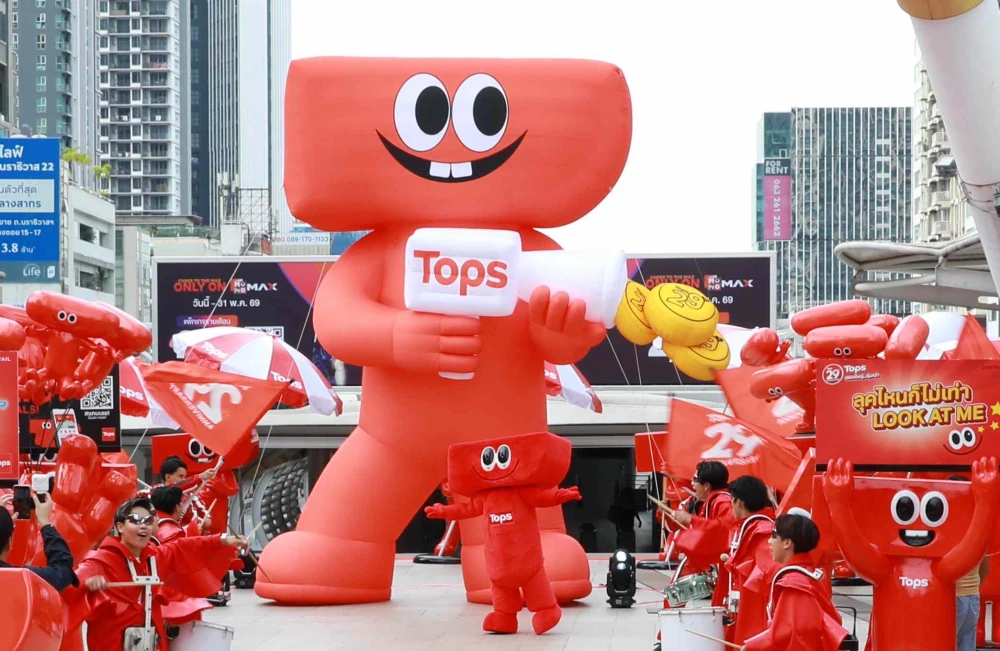 Bangkok, 19 August 2025 — TOPS, the food business under Central Retail, has kicked off its 29th anniversary celebrations in grand style, launching a major campaign to spread happiness across the country and give back to its customers. Reinforcing its position as Thailand’s leading supermarket and generating excitement for its flagship annual campaign, TOPS has unleashed a joyful red wave across the city with the launch of ‘The Red Phenomenon’. The spectacle is led by a giant 6-metre-tall TOPSTER mascot, accompanied by a troop of 48 TOPSTER in total, transforming the Chong Nonsi Skywalk — a bustling central business district landmark — into a vibrant red photo hotspot. Alongside the visual extravaganza, TOPS is spreading happiness with the giveaway of over 2,900 special discount coupons between 18 and 22 August 2025. The celebrations also include exclusive, unprecedented promotions, with discounts of up to 29% across the basket from over 119 leading partner brands, plus additional on-top basket discount coupons worth up to 450 baht. These offers run from 20 August to 30 September 2025, culminating in a one-day-only ‘secret deal’ surprise on 29 August 2025.