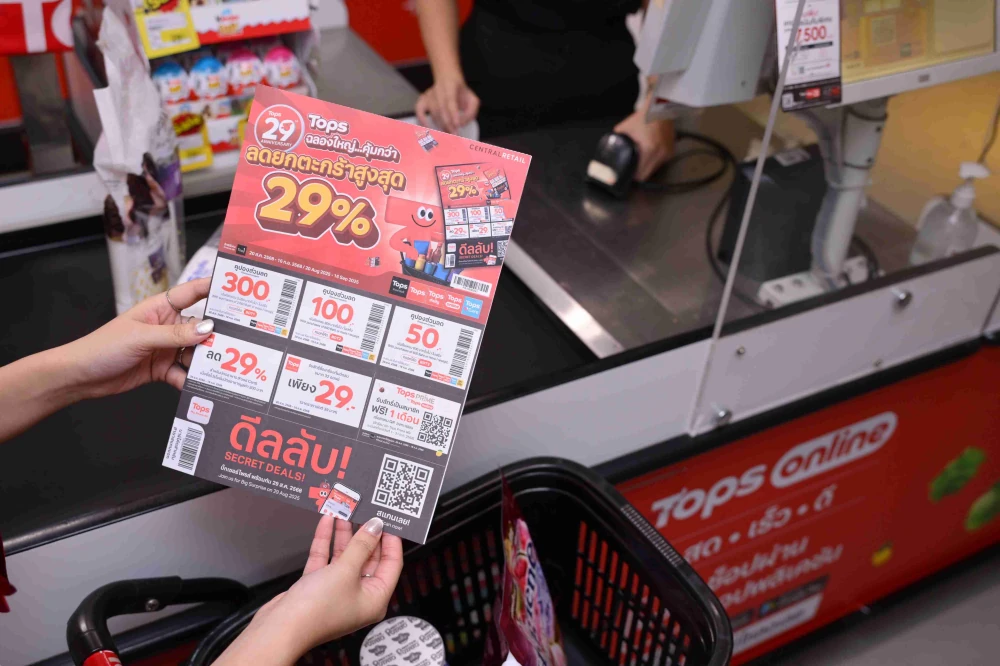 - Special! Customers who meet the spending conditions and receive coupons between 20-28 August 2025 (terms and conditions apply) will be eligible for the ultimate ‘secret deal’ on 29 August 2025, for one day only. Eligibility can be checked via TOPS My Rewards on the official LINE accounts of TOPS Thailand, TOPS FOOD HALL, and TOPS DAILY. Don’t miss it!
