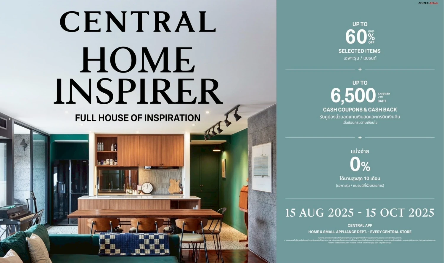 - ห้างเซ็นทรัล ในเครือเซ็นทรัล รีเทล ตอกย้ำการเป็นเดสติเนชันแห่งการสร้างแรงบันดาลใจในทุกช่วงเวลาของชีวิต คัมแบคแคมเปญเพื่อคนรักบ้านแห่งปี “CENTRAL HOME INSPIRER” (เซ็นทรัล โฮม อินสไปร์เรอร์) ครีเอทไอเดียและแรงบันดาลใจใหม่ ๆ แก่คนรักบ้านในคอนเซ็ปต์ ‘Full House of Inspiration เติมเต็มความสุข ให้ทุกบ้าน’ ตั้งแต่วันนี้ – 15 ต.ค. 68 ที่แผนกบ้าน ห้างเซ็นทรัลทุกสาขา และทุกช่องทางการช้อปปิ้งสุดสะดวกของห้าง