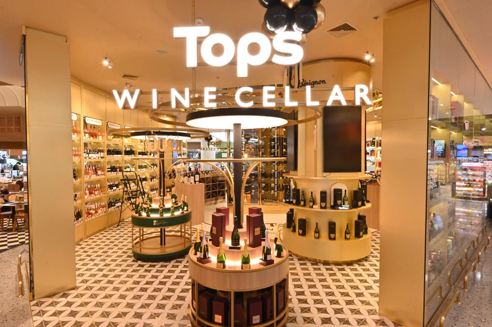 - TOPS WINE CELLAR – A luxurious open space gathering more than 1,400 labels of wines, craft beers, and rare spirits, distinguished by its dramatic Wine & Spirit Towers and automatic wine dispensers that allow customers to taste by the ounce, with convenient QR code payments. Experts are on hand to offer advice for every occasion.