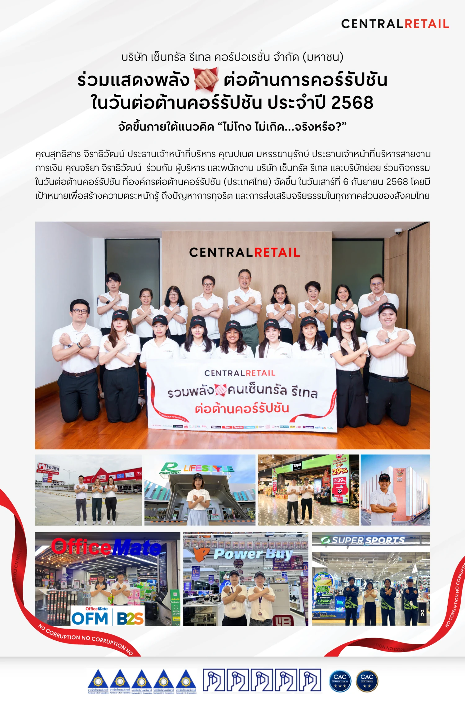 Central Retail Corporation Public Company Limited joined forces to stand against corruption on Anti-Corruption Day 2025, held under the theme “No Corruption, No Success... Is It True?” on September 6, 2025