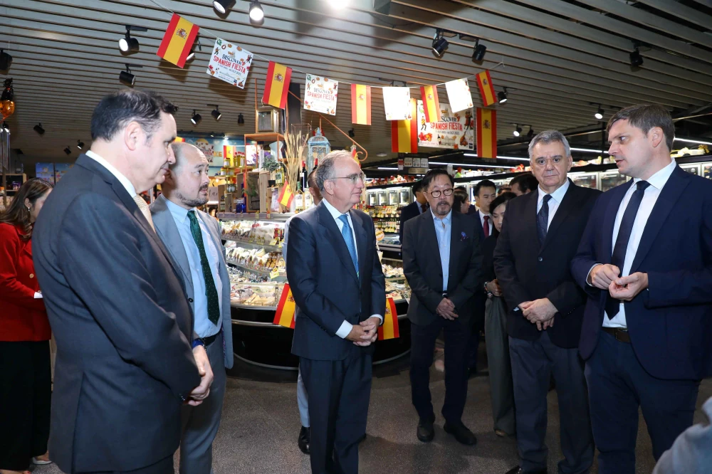 To celebrate the new launch, TOPS was honored by H.E. Mr. Felipe de la Morena Casado, Ambassador of the Kingdom of Spain to the Kingdom of Thailand, who presided over the opening. He was joined by esteemed guests including Mr. Vicente Cacho López de la Calzada, Deputy Head of Mission; Mr. Alvaro Gil-Navarro Moreno, Spanish Economic and Commercial Counsellor and Mr. Jose Luis Duran Sanles, President of the Spanish-Thai Chamber of Commerce. Executives from the Central Group also attended the event, including Mr. Sudhitham Chirathivat, Chairman of the Advisory Board, and Mrs. Supatra Chirathivat, Advisor - Corporate Relations and Social Affairs. Welcoming the distinguished guests were executives from Central Food Retail: Mr. Stephane Coum, Chief Executive Officer - Food Group; Mrs. Sujita Phengoun, Chief Operating Officer; Mr. Thanawat Jirajariyavej, Chief Merchandising Officer; and Mr. Chakkit Chatupanyachotikul, Head of Marketing, Public Relations & CSV.