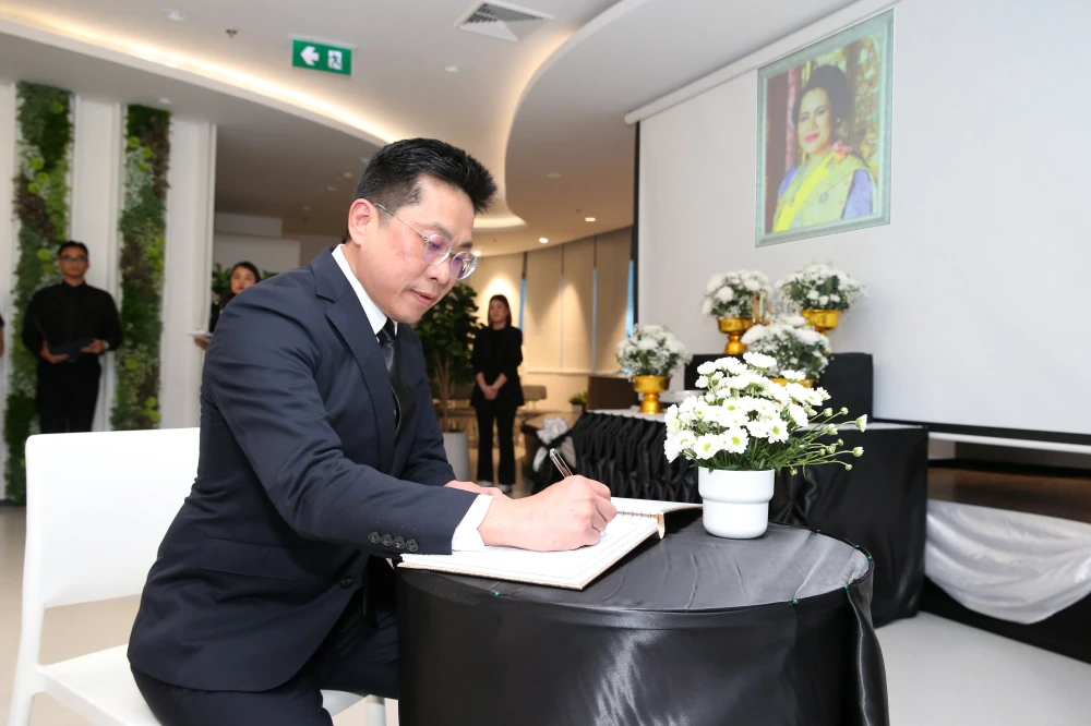โดยประธานในพิธีได้ลงนาม และนำกล่าวน้อมฯ ถวายความอาลัย พร้อมเชิญคณะผู้บริหารและพนักงานยืนสงบนิ่งเป็นเวลา 93 วินาที เพื่อรำลึกถึงพระมหากรุณาธิคุณอย่างหาที่สุดมิได้ ภายหลังการยืนสงบนิ่ง ประธานในพิธีเป็นตัวแทนพนักงาน วางพวงมาลัยถวายความอาลัยเบื้องหน้าพระฉายาลักษณ์