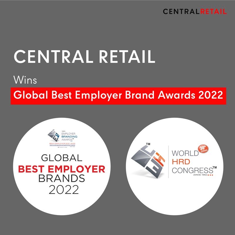 Central Retail, with great pride and joy, received ‘Global Best Employer Brand Awards 2022’ from the Employer Branding Institute and World HRD Congress, leading human resource organizations with a vast network of HR professionals convening to strengthen human resources practices and businesses. This award is given to an organization with excellent human resource management that creatively enhances the potential of employees and organization.