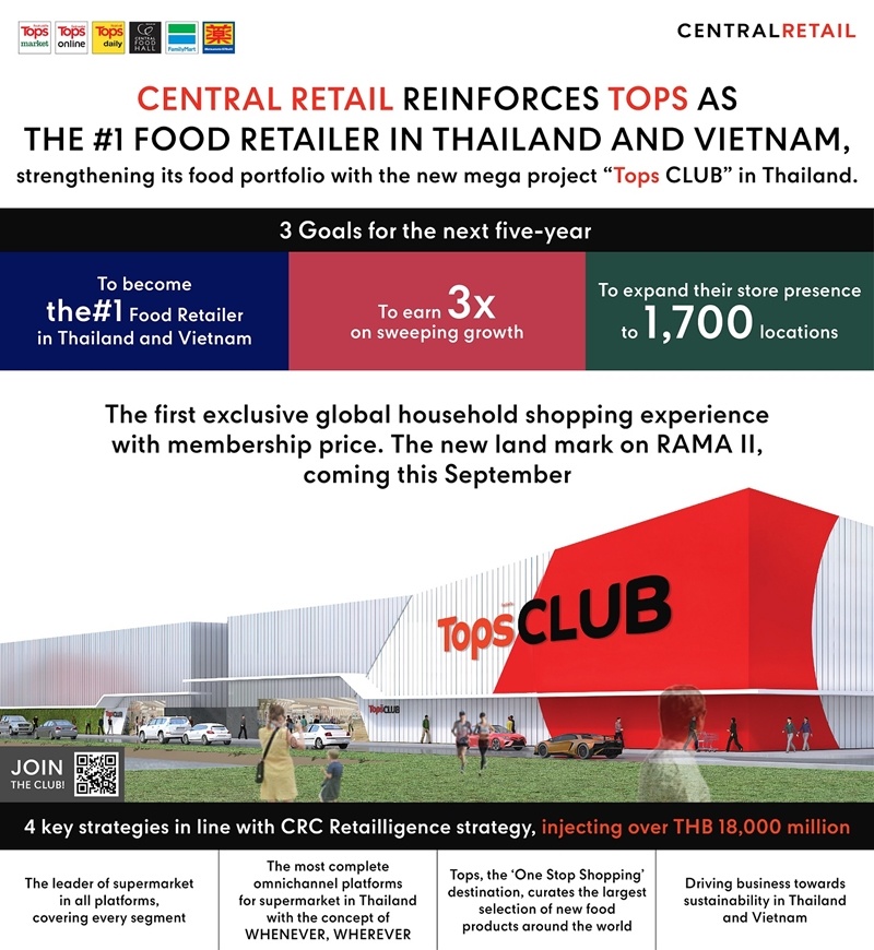 Central Retail reinforces Tops as the #1 Food Retailer in Thailand and Vietnam, strengthening its food portfolio with the new mega project “Tops CLUB” in Thailand.