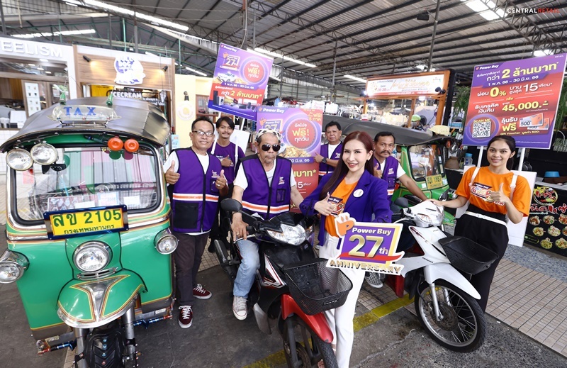 Moreover, Power Buy holds the "Power Buy ... Free Food and Transport in 5 Regions" activity to express customer appreciation. They will enjoy free street food from well-known local restaurants and a free ride in Tuk Tuk, hired motorcycles, and mini-trucks. This privilege is available on May 10, 2023, for those living in Bangkok, Chiang Mai, Khon Kaen, Chonburi, and Nakhon Si Thammarat. On June 7, 2023, food courts in Robinson Lifestyle countrywide will offer free meals. The "Power Buy ... Free Food and Transport in 5 Regions" logo will bring joy to customers.