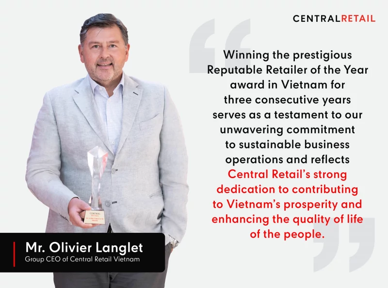 “Central Retail’s commitment goes beyond business expansion. We are dedicated to strengthening the community and continuously enhancing the quality of life for the people of Vietnam through various social activities in all dimensions of education, society, and the environment. Earning the prestigious Reputable Retailer of the Year award in Vietnam for three consecutive years serves as a testament to our unwavering commitment to sustainable business operations and reflects our strong dedication to contributing to Vietnam’s prosperity. On behalf of Central Retail, I would like to express my gratitude to all Vietnamese consumers for their steadfast support and trust in Central Retail throughout the years. We will continue to progress, enhancing our products and services to deliver the best experiences to consumers and ensuring sustainable and inclusive growth alongside Central Retail,” concluded Mr. Langlet.
