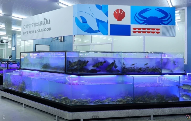 Experience the gigantic live seafood corner, the recreation of an ocean amidst the wholesale center