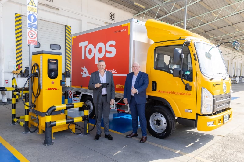 Bangkok, December 4, 2023 - Tops, a food business under Central Retail, has joined forces with DHL Supply Chain Thailand, a global leader in logistics, to position itself as a frontrunner in 'Green & Sustainable Retail'. This initiative involves the introduction of electric-powered 4-wheeled trucks, utilizing 100% electric energy.