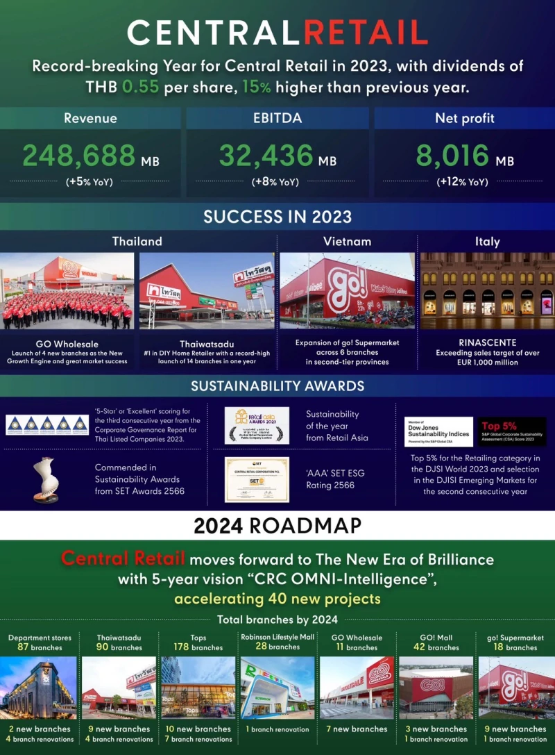 Record-breaking Year for Central Retail: 2023 Profit Hits THB 8,016 Million, Up 12%, with dividends of THB 0.55 per share, 15% higher than previous year