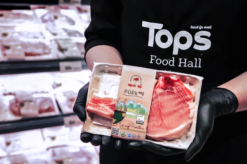 This innovative packaging debut marks a monumental milestone, being Thailand’s first supermarket employing eco-friendly packaging for meat products that decompose naturally, thus mitigating environmental and societal impacts, and reducing potential harm to wildlife caused by plastic pollution. Each unit of packaging is estimated to reduce carbon dioxide emissions by approximately 64 grams. Currently, Tops has initiated the transition to this new packaging for pork and chicken products across 14 items, available at all participating branches of Tops and Tops Food Hall, with plans to extend this packaging shift to beef and lamb products, and eventually to Tops daily stores, aiming to slash carbon dioxide emissions by more than 3 tons of CO2-equivalent by the end of 2024.
