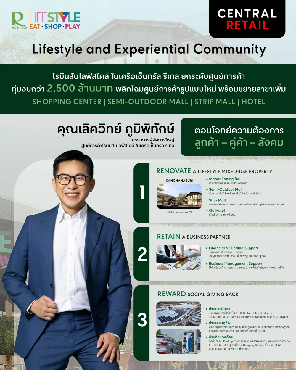 โรบินสันไลฟ์สไตล์ ในเครือเซ็นทรัล รีเทล ทุ่มงบกว่า 2,500 ล้านบาท พลิกโฉมศูนย์การค้ารูปแบบใหม่ พร้อมขยายสาขา ยกระดับประสบการณ์ ลูกค้า-คู่ค้า-สังคม ครบวงจร