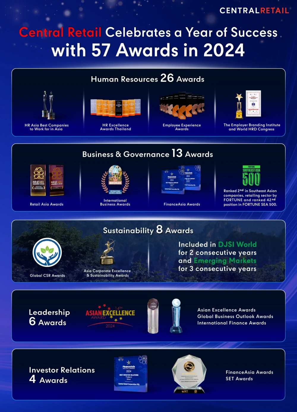 Central Retail celebrates a year of success with 57 awards in 2024 in various categories including HR, Business & Governance, Sustainability, Leadership, and IR