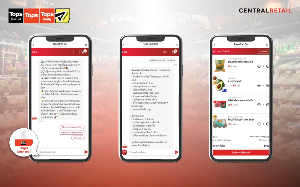Tops Chef Bot delivers an enhanced shopping experience while optimizing inventory management through online systems, reducing manpower and resources for stocktaking. It also boosts sales with cross-selling strategies, promoting complementary products and services. Moreover, Central Retail has integrated employee interaction (Human in the Loop) alongside the development of AI to maintain the relationship between Central Retail and the customer. This solution is expected to increase sales by approximately 11 million baht annually for all Central Food Hall and Tops Market 17 stores and improve customer engagement and store operations.