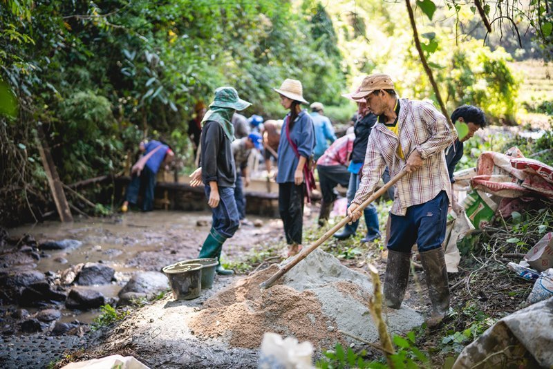 Throughout 3 years, a total of 814 weirs were built in Mae Chaem District, Chiang Mai. With 1 Mae Tung Ting bridge across the Mae Chaem river and 1 reservoir that efficiently stores water used to restore watershed forests, to keep the soil moisture, to balance the troops of nature and the environment, and to help preserve and sustain forests in the future.