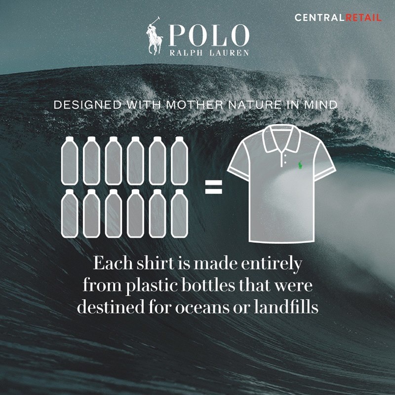 an average of 12 plastic bottles converting to high quality thread to make one Earth polo by aiming to divert 170 million plastic bottles from landfills and oceans by 2025.