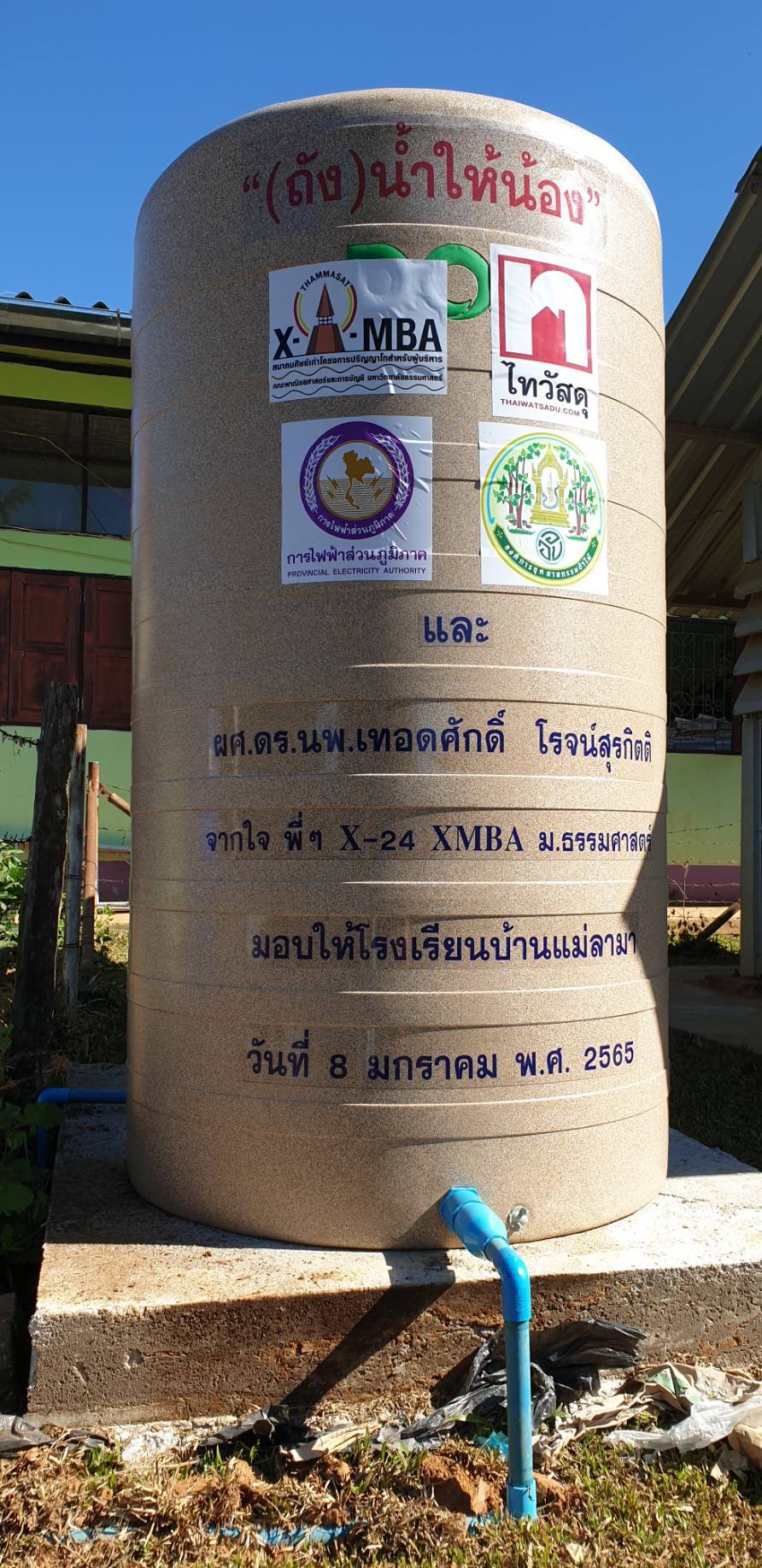 จึงเกิดเป็นความร่วมมือ ร่วมใจ แบ่งปันน้ำใสสะอาด โดยการส่งมอบถังเก็บน้ำจำนวน 2,000 ลิตร ให้แก่เด็กนักเรียน 28 โรงเรียน ในพื้นที่ จ.แม่ฮ่องสอน และ จ.เชียงใหม่ จำนวน 44 ถัง มูลค่ากว่า 300,000 บาท โดยมีคุณประวิทย์ ชนม์ธนวัฒน์ ที่ปรึกษาโครงการฯ และ ไทวัสดุ สาขาเชียงใหม่ ร่วมกันดำเนินการจัดเตรียม และ เป็นตัวแทนมอบถังน้ำ 2 ถังแรก ให้แก่ โรงเรียนบ้านแม่ลามา อำเภอสบเมย จังหวัดแม่ฮ่องสอน โดยถือฤกษ์ดีส่งมอบเมื่อวันเด็ก 8 มกราคม 2565 ที่ผ่านมา และมีแผนในการส่งมอบถังน้ำที่เหลือทั้งหมดอีก 26 โรงเรียน คาดว่าจะแล้วเสร็จภายในวันที่ 14 กุมภาพันธ์ 2565 นี้