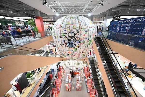 5. ตกแต่งห้างสรรพสินค้าเซ็นทรัลจากผลิตภัณฑ์ท้องถิ่น ด้วยการจับมือกับ LaRocca แบรนด์แฟชั่น อัปไซเคิล สร้างสรรค์งานศิลปะจัดวางอย่างสวยงาม เพื่อตกแต่งห้างสรรพสินค้าเซ็นทรัล สาขาเมกาบางนา ด้วยถุงผ้าใบมือสองกว่า 1,600 ใบ รวมถึงการร่วมมือกับชุมชนหุบกะพง จังหวัดเพชรบุรี จัดแสดงผลงานประติมากรรมจากเส้นใยรีไซเคิล ณ เซ็นทรัล เวสต์วิลล์ นอกจากนี้ เซ็นทรัล รีเทล ยังได้ร่วมกันกับ CTRL+R Collective จัดแสดงนิทรรศการป๊อปอัพเกี่ยวกับวัสดุหมุนเวียน วัสดุย่อยสลายได้ทางชีวภาพ และวัสดุรีไซเคิล ทำให้ผู้เข้าชมได้ตระหนักถึงความยั่งยืนในภาคการค้าปลีกมากขึ้น