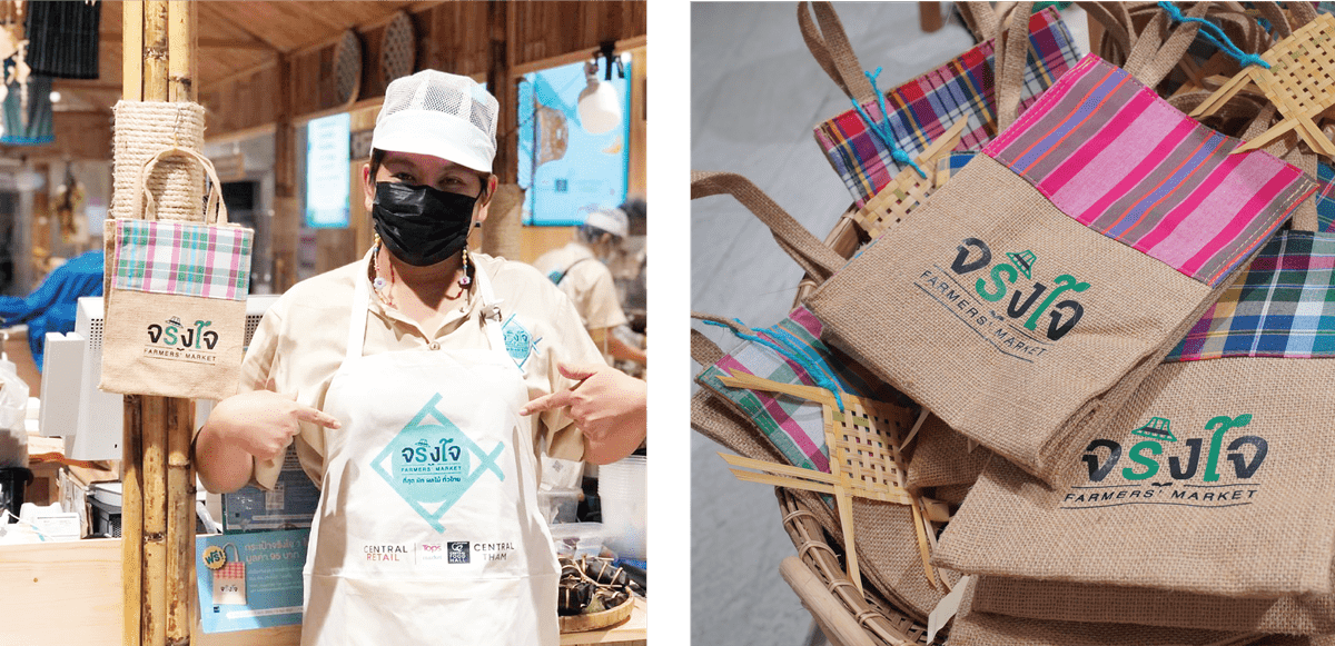 Using plastic fibers to make aprons and bags, which 1 apron is made from 10 plastic bottles. In 2020 we have produced aprons for the Farmer’s Market project reusing 2,000 plastic bottles and in 2021 aim to use 11,000 plastic bottles.