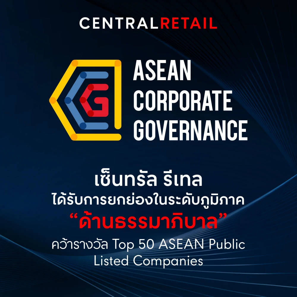 โดยบริษัท เซ็นทรัล รีเทล คอร์ปอเรชั่น จำกัด (มหาชน) ได้รับคะแนนติดอันดับสูงสุด 50 อันดับแรกของบริษัทจดทะเบียนชั้นนำในอาเซียน (ASEAN Public Listed Companies – PLCs) จากการประเมินผล ASEAN Corporate Governance Scorecard (ACGS) สะท้อนให้เห็นถึงศักยภาพในการบริหารจัดการและความเป็นเลิศด้านธรรมาภิบาลองค์กร ในการส่งเสริมความโปร่งใส และความรับผิดชอบต่อผู้มีส่วนได้เสียทุกฝ่าย เพื่อสร้างความเชื่อมั่นให้แก่นักลงทุนในภูมิภาค