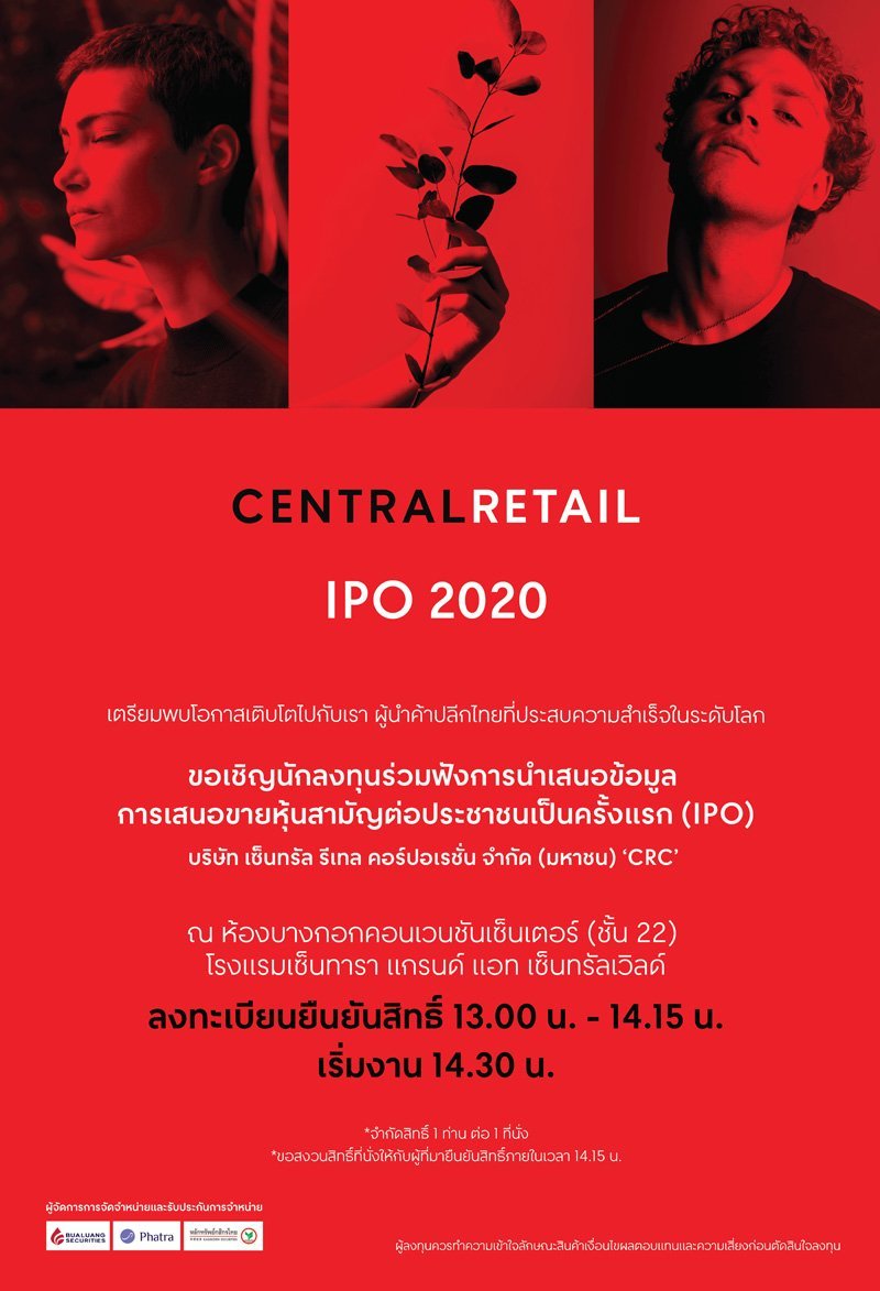 บริษัท เซ็นทรัล รีเทล คอร์ปอเรชั่น จำกัด (มหาชน) ขอขอบคุณที่ท่านให้ความสนใจ และลงทะเบียนล่วงหน้าเข้าร่วมงาน Central Retail IPO 2020