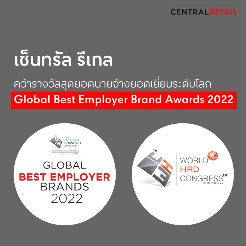 เซ็นทรัล รีเทล คว้ารางวัลในเวทีระดับโลก Global Best Employer Brand Awards 2022 หรือ สุดยอดนายจ้างยอดเยี่ยมระดับโลก จาก The Employer Branding Institute และ World HRD Congress สถาบันชั้นนำด้านทรัพยากรมนุษย์ ซึ่งเป็นการรวมตัวกันของผู้เชี่ยวชาญ เพื่อเสริมสร้างความแข็งแกร่งในงานทรัพยากรบุคคลและธุรกิจ เป็นรางวัลเพื่อเชิดชูองค์กรที่มีการบริหารภายในองค์กรที่ดี เสริมสร้างศักยภาพของพนักงานและบุคลากรขององค์กรให้ทำงานเป็นทีมอย่างสร้างสรรค์