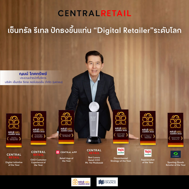 เซ็นทรัล รีเทล ในฐานะค้าปลีกอัจฉริยะ ผสานแนวคิด Digital First ในการดำเนินธุรกิจ พร้อมทรานส์ฟอร์มองค์กรทุกมิติแบบ Digital-First Culture รวมถึงเป็นผู้ริเริ่มออมนิแชแนล (Omnichannel First Mover) ที่รู้จักและรู้ใจลูกค้า Omni-customer ยุค 5.0 อย่างแท้จริง และ ไม่หยุดนิ่งที่จะยกระดับบริการด้วยกลยุทธ์ Customer-Centric Omnichannel Platform เชื่อมต่อออฟไลน์เข้ากับโลกดิจิทัลได้อย่างไร้รอยต่อ เพื่อรองรับความต้องการของผู้บริโภคที่เปลี่ยนแปลงอย่างรวดเร็ว รวมทั้งปรับปรุงบริการ ณ จุดจำหน่ายสินค้า ขยายสาขา ปรับโฉมหน้าร้านให้ทันสมัย สวยงาม ครบครัน เพื่อสร้างประสบการณ์ช้อปปิ้งที่สมบูรณ์แบบ และสะดวกสบายสำหรับลูกค้าทุกคน โดย Retail Asia นิตยสารธุรกิจชั้นนำของสิงคโปร์ ได้เล็งเห็นถึงความสำเร็จนี้ และยกย่อง เซ็นทรัลรีเทล ด้วย 2 รางวัล ได้แก่