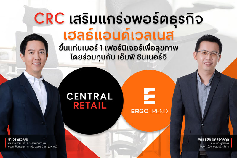 กรุงเทพฯ 19 กรกฎาคม 2565 – บริษัท เซ็นทรัล รีเทล คอร์ปอเรชั่น จำกัด (มหาชน) หรือ CRC เดินเกมรุกขับเคลื่อนยุทธศาสตร์ CRC Retailligence เร่งเครื่องขยายพอร์ตธุรกิจกลุ่มเฮลธ์แอนด์เวลเนสอย่างเต็มกำลัง ล่าสุดทุ่มงบกว่า 240 ล้านบาท ดัน “ออฟฟิศเมท” ผู้นำอันดับ 1 ด้านอุปกรณ์สำนักงาน ไอที เฟอร์นิเจอร์ และสินค้าเพื่อธุรกิจ B2B เข้าร่วมทุนกับ บริษัท เอ็มพี ซินเนอร์จี จำกัด ผู้นำด้านเฟอร์นิเจอร์เพื่อสุขภาพ ภายใต้แบรนด์ยอดนิยม “เออร์โกเทรนด์” (Ergotrend) ในสัดส่วน 60% เพื่อเสริมแกร่งสินค้าในกลุ่มเฮลธ์แอนด์เวลเนสที่มีแนวโน้มขยายตัวสูงขึ้น พร้อมเดินหน้าลุยตลาดอย่างต่อเนื่อง เพื่อครองส่วนแบ่งในตลาดเฟอร์นิเจอร์ที่มีมูลค่าสูงถึง 4.3 หมื่นล้านบาท และมุ่งสู่เบอร์ 1 ตลาดเฟอร์นิเจอร์เพื่อสุขภาพในไทยอย่างเต็มรูปแบบ