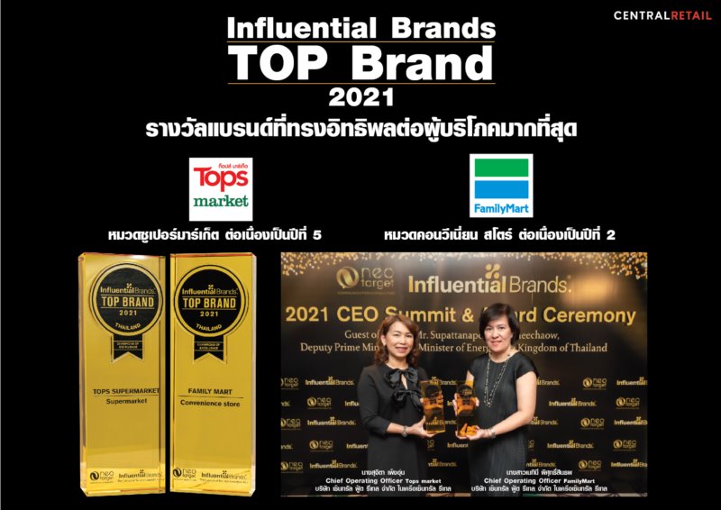 เซ็นทรัล ฟู้ด รีเทล ยืนหนึ่งผู้นำค้าปลีกไทย นำ ท็อปส์ มาร์เก็ต และ แฟมิลี่มาร์ท คว้า รางวัลแบรนด์ที่ทรงอิทธิพลต่อผู้บริโภคมากที่สุด (Top Influential Brands)