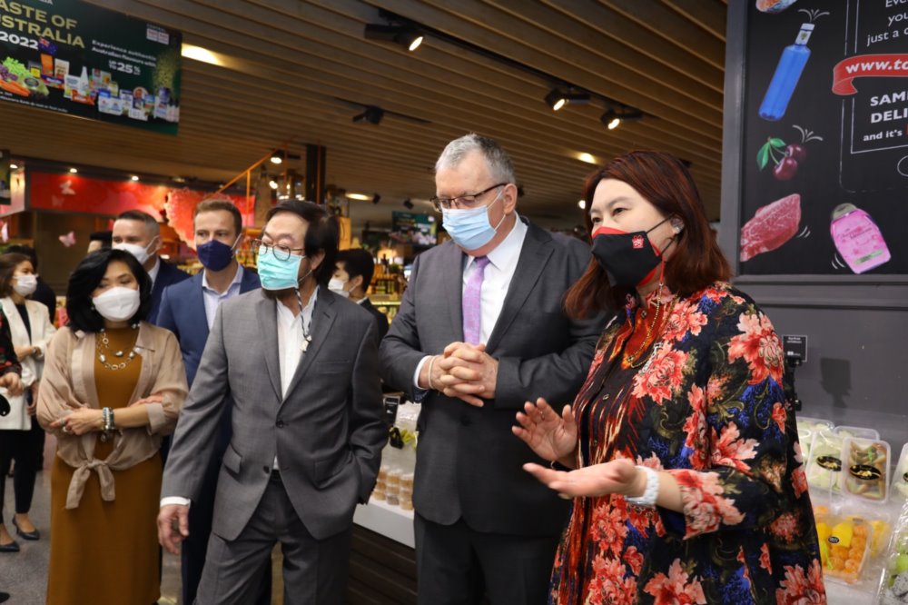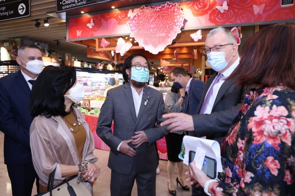 ฯพณฯ นายอัลลัน แมคคินนอน (คนกลาง) เอกอัครราชทูตออสเตรเลียประจำประเทศไทย พร้อมด้วย นายสุทธิธรรม จิราธิวัฒน์ (ที่ 4 จากซ้าย) ประธานคณะกรรมการที่ปรึกษา บริษัท กลุ่มเซ็นทรัล จำกัด นางสุพัตรา จิราธิวัฒน์ (ที่ 3 จากซ้าย) รองกรรมการผู้จัดการใหญ่ สำนักนโยบายองค์กรสัมพันธ์และภาพลักษณ์ บริษัท กลุ่มเซ็นทรัล จำกัด และ นายสเตฟาน คูม (ที่ 3 จากขวา) ประธานเจ้าหน้าที่บริหาร บริษัท เซ็นทรัล ฟู้ด รีเทล จำกัด ในเครือเซ็นทรัล รีเทล ร่วมเปิดงาน “Taste of Australia 2022” สัมผัสรสชาติแบบออสเตรเลียขนานแท้ ส่งตรงความสด อร่อยสไตล์ออสซี่ กับขบวนสินค้าทั้งเนื้อสัตว์ ซีฟู้ด ผลไม้ เครื่องปรุงและของใช้ พร้อมส่วนลดสูงสุด 25 % ตั้งแต่วันที่ 2 - 15 กุมภาพันธ์ 2565 ที่ท็อปส์ มาร์เก็ตสาขาที่ร่วมรายการ เซ็นทรัล ฟู้ด ฮอลล์ทุกสาขา และท็อปส์ ออนไลน์ โดยมี ไมเคิล เฮลเลแมน (ที่ 4 จากขวา), ซูซาน วอง (ที่ 2 จากขวา), เมทินี พิศุทธิ์สินธพ (ขวาสุด), นงนุช เพ็ชรรัตน์ (ที่ 2 จากซ้าย) และ พัสสน ศรินทุ (ซ้ายสุด) มาร่วมงานด้วย ณ เซ็นทรัล ฟู้ด ฮอลล์ สาขาเซ็นทรัล ชิดลม เมื่อวันพฤหัสบดีที่ 3 กุมภาพันธ์ 2565