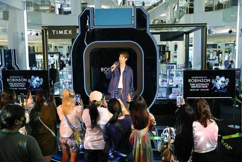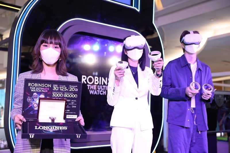 พร้อมผุดไอเดียเก๋ เพื่อสร้างสีสันภายในงาน และสร้างประสบการณ์ความสนุกแก่นักช้อปวอทช์เลิฟเวอร์กับ ครั้งแรก! ที่จะให้เหล่าวอทช์เลิฟเวอร์ได้สนุกกับการท่องโลกนาฬิกาสุดล้ำแบบเสมือนจริง 360 องศา! ในคอนเซ็ปต์ ‘Metaverse’ ไปกับไกด์กิติมศักดิ์อย่างหนุ่มวอทช์เลิฟเวอร์สุดฮอต “เจเจ - กฤษณภูมิ” ผ่านอุปกรณ์แว่น VR เพียงช้อปครบ 10,000 บาท ขึ้นไป พร้อมร่วมเซลฟี่ในโลกนาฬิกาเสมือนจริงกับหนุ่มเจเจ ลุ้นรับคะแนนเดอะวัน 200 คะแนน, 400 คะแนน และคะแนน 2 เท่า รวมทั้งชวนแชะ แล้วแชร์กิจกรรมท่องโลกนาฬิกาสุดล้ำแบบเสมือนจริง แล้วโพสต์ใน Facebook ส่วนตัว พร้อมเปิดเป็นสาธารณะ และใส่ Hashtag #Robinsonultimatewatchfair2022 รับไปเลย! คูปองแทนเงินสดมูลค่า 100 บาท สำหรับช้อปภายในงาน และที่แผนกนาฬิกา ห้างโรบินสัน แฟชั่นไอส์แลนด์ ตั้งแต่วันที่ 22 มี.ค. – 3 เม.ย. 65 ณ เซ็นเตอร์ คอร์ท ชั้น 1 ศูนย์การค้าแฟชั่นไอส์แลนด์ และหลากหลายช่องทางการช้อปปิ้งสุดสะดวกของห้างฯ