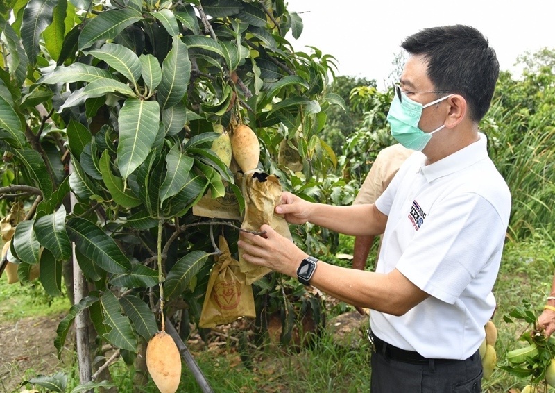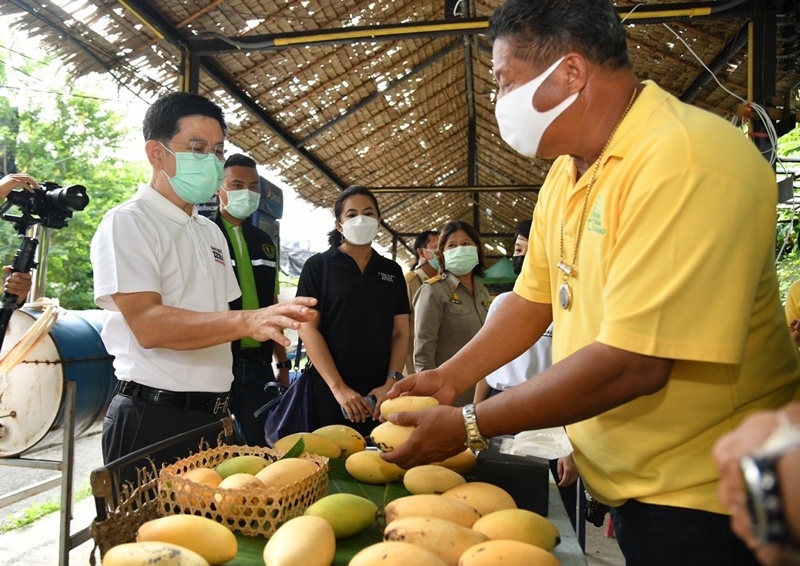 นายวุฒิไกร ลีวีระพันธุ์ อธิบดีกรมทรัพย์สินทางปัญญา ร่วมส่งเสริมและขยายช่องทางการตลาดให้กับสินค้า GI เพื่อช่วยเพิ่มรายได้ให้กับเกษตรกรไทยอย่างยั่งยืน ร่วมกับ ผู้บริหาร ท็อปส์ มาร์เก็ต, เซ็นทรัล ฟู้ด ฮอลล์ และ จริงใจ Farmers’ Market ในเครือเซ็นทรัล รีเทล ลงพื้นที่จังหวัดสมุทรปราการ ตรวจเยี่ยมแหล่งผลิตสินค้า GI “มะม่วงน้ำดอกไม้คุ้งบางกะเจ้า” ซึ่งเป็นมะม่วงพันธุ์เขียวนวลหรือพันธุ์น้ำดอกไม้พระประแดง หนึ่งในสายพันธุ์ที่หวานหอมที่สุดในประเทศไทย และเป็นที่นิยมจนสามารถสร้างรายได้ให้แก่เกษตรกรและชุมชนในพื้นที่มากกว่า 2 ล้านบาทต่อปี เตรียมพร้อมนำ“มะม่วงน้ำดอกไม้คุ้งบางกะเจ้า”ที่เพาะปลูกในพื้นที่คุ้งบางกระเจ้าซึ่งเป็น “The best urban oasis of asia” จากสวนผลไม้ที่มีทั้งน้ำจืด น้ำเค็ม และน้ำกร่อยไหลเวียน ทำให้มะม่วงน้ำดอกไม้คุ้งบางกะเจ้า มีรสชาติหอม หวานละมุน มาจำหน่ายให้ลูกค้าได้บริโภคสินค้าจากแหล่งเพาะปลูกชั้นเลิศในฤดูกาลที่ดีที่สุด เพื่อสนับสนุนให้เกษตรกรไทยได้มีช่องทางจัดจำหน่ายผลผลิตทางการเกษตรในตลาดที่มีศักยภาพสร้างงาน สร้างอาชีพ สร้างรายได้อย่างยั่งยืน