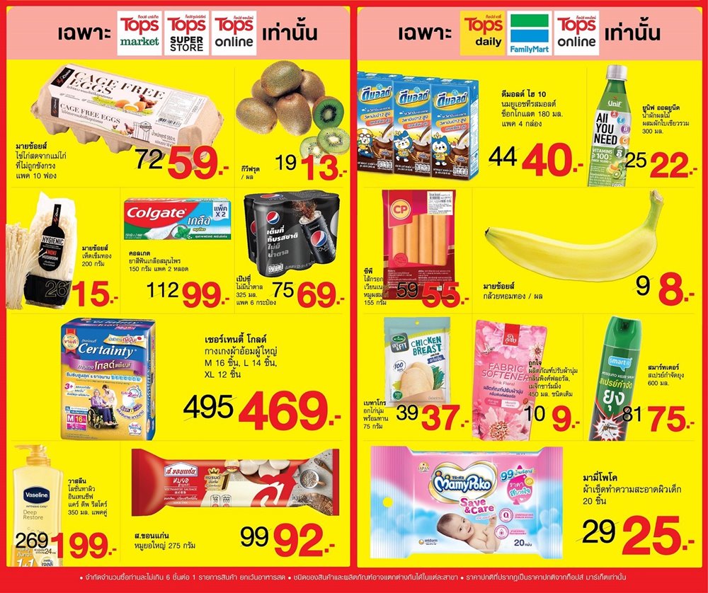 เริ่มลดและล็อคราคาพร้อมกันทั่วประเทศ ที่ ท็อปส์ มาร์เก็ต, ท็อปส์ ซูเปอร์สโตร์, ท็อปส์ เดลี่และ แฟมิลี่มาร์ททุกสาขาและท็อปส์ ออนไลน์ ติดตามรายละเอียดเพิ่มเติมได้ที่ www.tops.co.th, เฟซบุ๊ก TopsThailand , FamilyMartThailand หรือไลน์@TopsThailand และ @FamilyMartThailand