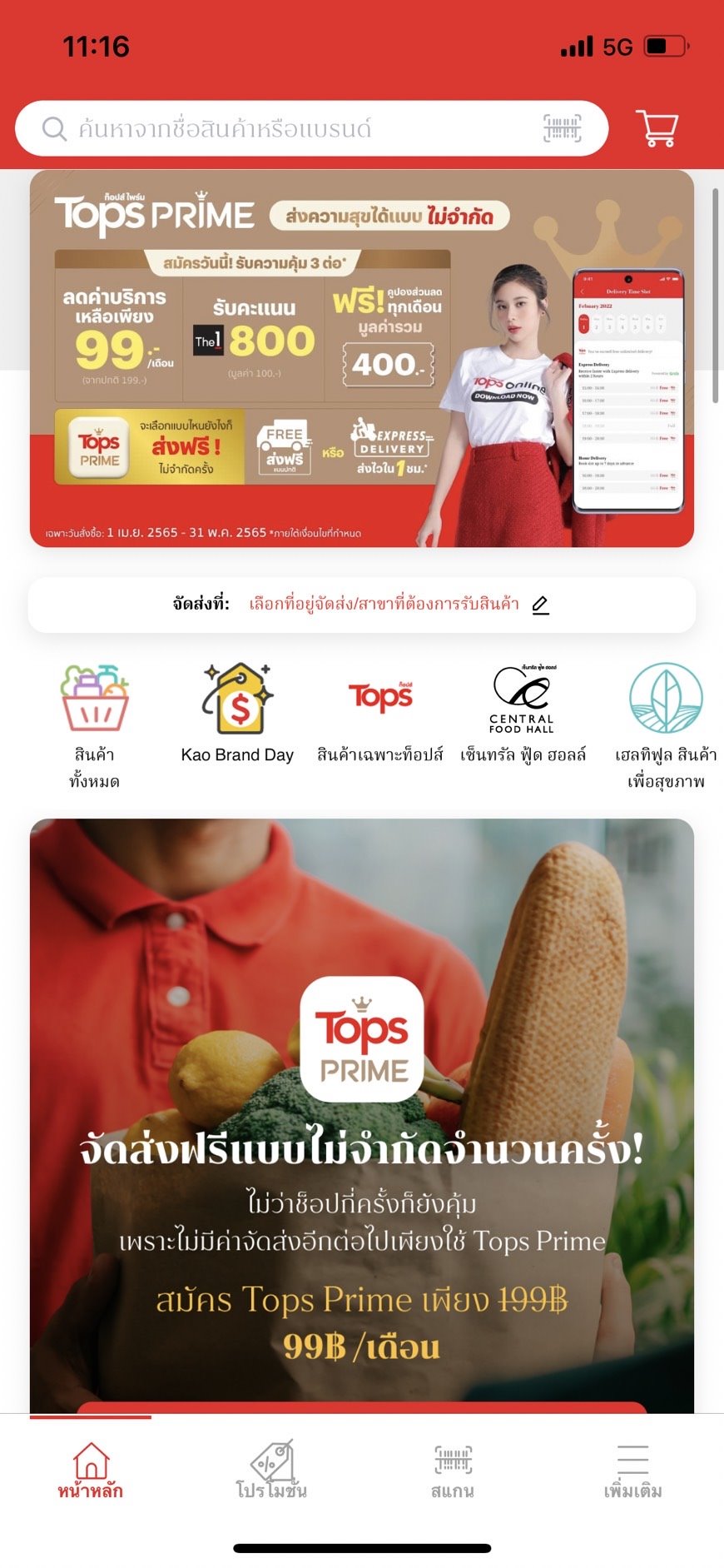 - ใช้บริการเดลิเวอรี่ Tops Prime ได้ไม่จำกัดจำนวนครั้งเมื่อยอดสั่งซื้อ 100 บาทขึ้นไป และเลือกบริการจัดส่งในแบบปกติ รวมไปถึงการจัดส่งแบบ Express Delivery ส่งไวใน 1 ชม. (การจัดส่งแบบปกติ ส่งฟรีเมื่อสั่งซื้อครบ 888 บาท สำหรับ express ส่งไวใน 1 ชั่วโมงค่าส่งเริ่มต้นที่ 20 บาทถึง 80 บาท ตามระยะทาง)