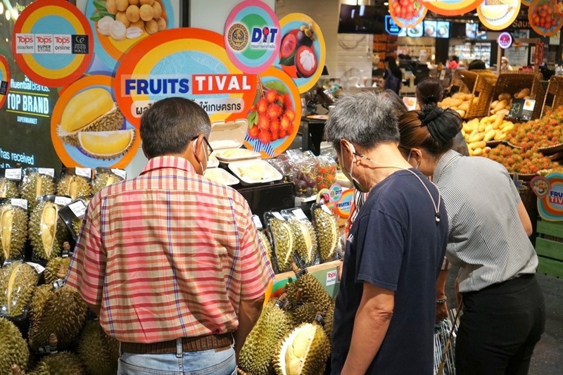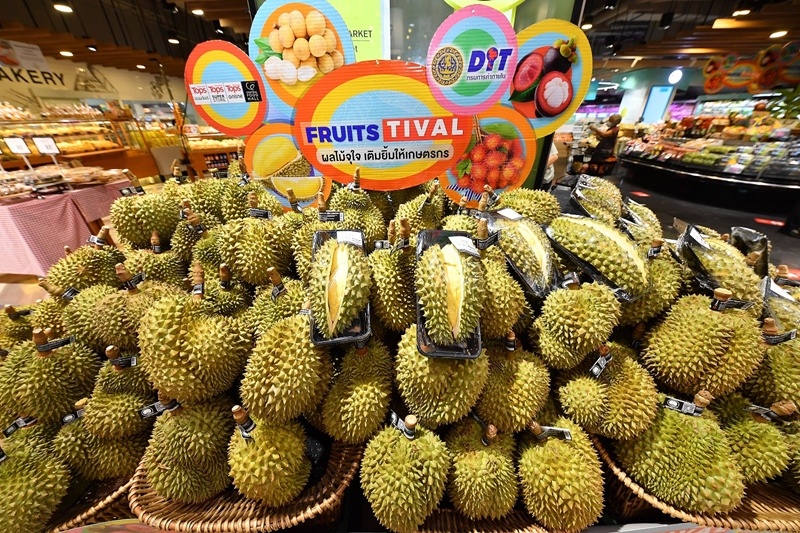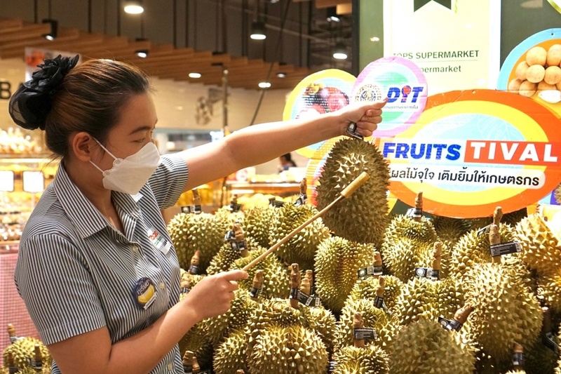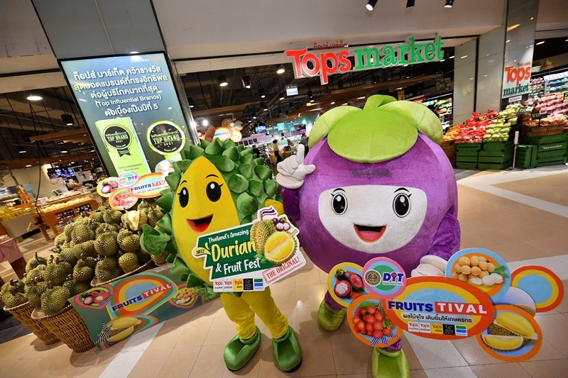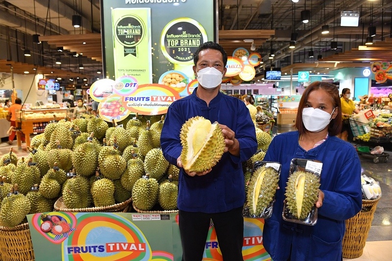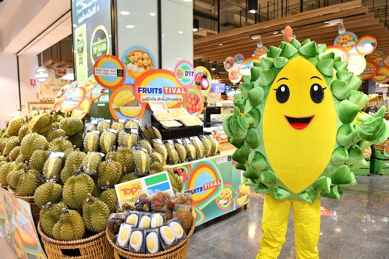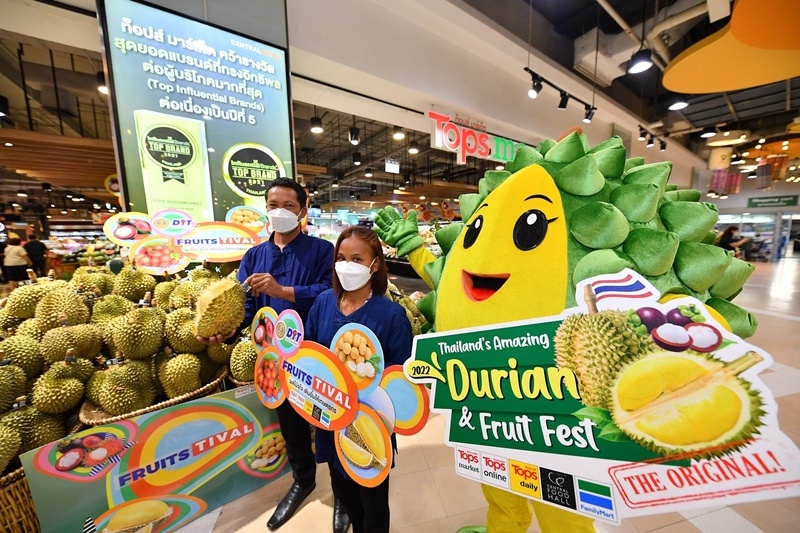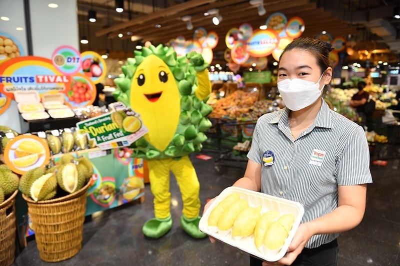 พร้อมจัดแคมเปญ “FRUITS-TIVAL” เชิญชวนและรณรงค์ให้เกิดการบริโภคผลไม้ไทยของคนในประเทศ เพื่อร่วมเติมยิ้มสร้างรายได้ให้กับพี่น้องเกษตรกร ตั้งแต่วันที่ 29 เมษายน – 30 มิถุนายน 2565 ที่ร้านค้าในเครือทุกสาขา โดยชูไฮไลท์บริโภคผลไม้ไทยเกรดพรีเมียม คุณภาพส่งออก ในราคาที่เข้าถึงได้ง่าย มีผลไม้ไฮไลท์ประจำฤดูกาล “ทุเรียน” ซึ่งได้ชื่อว่าเป็น King of Fruit จัดรายการพิเศษ ทุเรียนหมอนทองเกรด พรีเมียม ชั่งเฉพาะเนื้อ 500 กรัม ราคาเพียงแพคละ 399 บาท, 1 กิโลกรัม เพียง 780 บาท จำหน่ายที่ท็อปส์ มาร์เก็ต, ท็อปส์ ซูเปอร์สโตร์, เซ็นทรัล ฟู้ดฮลล์ ทุกสาขา, ท็อปส์ ออนไลน์, บริการผู้ช่วยช้อปส่วนตัว (Personal Shopper) และเดลิเวอรี่พาร์ทเนอร์บนแอปพลิเคชัน Grab