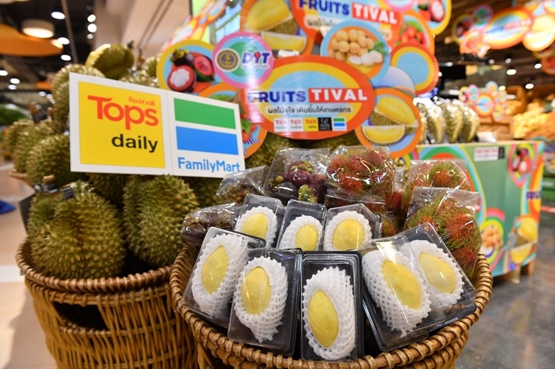 ท็อปส์, เซ็นทรัล ฟู้ด ฮอลล์ และ แฟมิลี่มาร์ท กางแผนช่วยชาวสวนรับมือผลไม้ทะลัก ซื้อผลผลิตเพิ่ม 100% ผลักดันบริโภคผลไม้ในประเทศ ชูไฮไลท์ทุเรียนพูเดียวพร้อมทาน ราคาประหยัด ผ่านแคมเปญ ‘FRUITS-TIVAL และบุฟเฟต์ทุเรียนต้นตำรับรายแรกของไทย