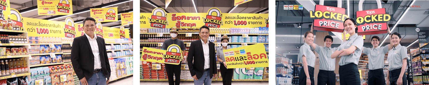 ท็อปส์ และ แฟมิลี่มาร์ท เข้าใจถึงความเดือดร้อนและความวิตกกังวลของพี่น้องคนไทยทุกคน และให้ความสำคัญกับการดูแลราคาสินค้าเพื่อช่วยแบ่งเบาภาระค่าใช้จ่าย ดูแลค่าครองชีพให้พี่น้องประชาชนคนไทยอย่างต่อเนื่อง สามารถเข้าถึงสินค้าอุปโภค-บริโภคที่ดีมีคุณภาพ เพิ่มความคุ้มค่า คุ้มราคา จึงใช้ กลยุทธ์สินค้าป้ายเหลือง “TOPS LOCKED PRICE” ล็อคราคา สู้วิกฤตกลางปี เพื่อช่วยประชาชนสู้วิกฤตค่าครองชีพพุ่งสูง เพิ่มความเชื่อมั่น กระตุ้นการใช้จ่าย ถึงแม้ว่าสินค้าอุปโภค-บริโภคที่จำเป็นในชีวิตประจำวัน มีแนวโน้มปรับราคาเพิ่มขึ้น แต่ท็อปส์และแฟมิลิมาร์ท ร่วมกับผู้ผลิตสินค้าหลากหลายแบรนด์ยังยืนยันไม่ขึ้นราคาสินค้า พร้อมตรึงราคากว่า 1,000 รายการ นานถึง 3 เดือน โดยคัดสรรสินค้าอุปโภค-บริโภคที่จำเป็นในชีวิตประจำวันจากแบรนด์ชั้นนำครอบคลุมสินค้า ทุกหมวดหมู่ อาทิ กลุ่มสินค้าอาหารสด ผัก ผลไม้ เนื้อสัตว์ อาหารทะเล, กลุ่มสินค้าอาหารแห้ง เครื่องปรุง ข้าวสาร, กลุ่มสินค้าทำความสะอาดและของใช้ในบ้าน, กลุ่มสินค้าแม่และเด็ก, กลุ่มสินค้าเพื่อสุขภาพและความงาม, กลุ่มขนมและเครื่องดื่ม ฯลฯ นอกจากนั้นทุก ศุกร์ เสาร์ อาทิตย์ เพิ่มความคุ้มค่ามากขึ้นกับสินค้า WEEKEND CRAZY PRICE! ลดสูงสุด 50 % ทุบราคา...สุดสัปดาห์เท่านั้น