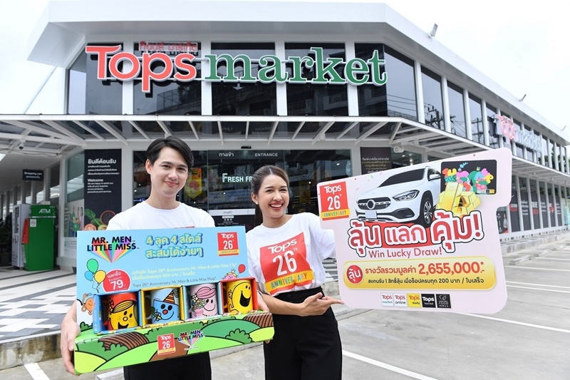 และในโอกาสฉลองครบรอบ 26 ปี ‘ท็อปส์’ ได้เตรียมโปรโมชั่นสุดคุ้มค่าเพื่อส่งมอบความสุขและตอบแทนลูกค้าทุกคนที่ร่วมเดินทางมาด้วยกัน นำตัวการ์ตูนคาแรคเตอร์สุดคลาสสิคที่ครองใจเด็กๆ ทั่วโลกมายาวนานกว่า 50 ปี อย่าง MR.MEN & LITTLE MISS มาสร้างสีสัน ความสดใส ให้โลดแล่นอยู่ภายในร้านท็อปส์ทุกสาขาเป็นเสมือนตัวแทนของท็อปส์ที่ส่งมอบความรัก ความสุข สนุกสนาน ประสบการณ์ที่แสนพิเศษ พร้อมด้วยรอยยิ้มและ เสียงหัวเราะให้กับคนไทยมาตลอด 26 ปี โดยจัดทำเป็นสินค้าแลกซื้อคอลเลคชั่นสุดพิเศษให้ทุกคนได้สะสม