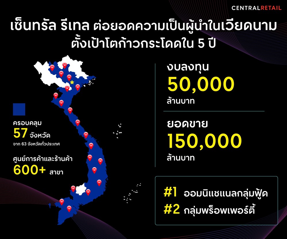 เซ็นทรัล รีเทล เดินหน้าลงทุน 5 ปี 50,000 ล้านบาท ต่อยอดความเป็นผู้นำในเวียดนาม ตั้งเป้าสร้างยอดขาย 150,000 ล้านบาท ภายในปี 2570