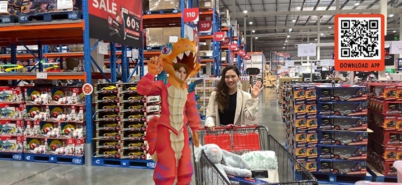 ภาพการช้อปปิ้งร่วมกันของลูกค้าที่อยู่หน้าร้านจริงและโลกเสมือน ผ่าน AR Mode