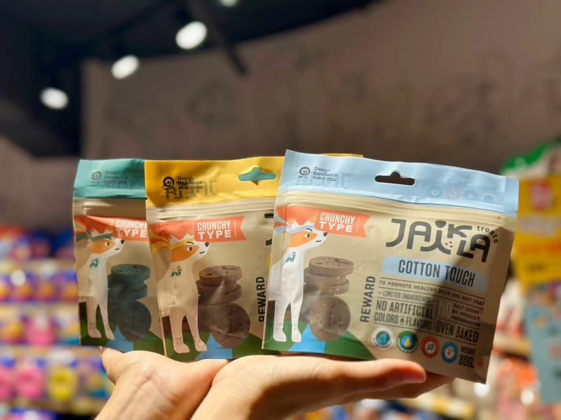 ผลิตภัณฑ์ขนมสำหรับสัตว์เลี้ยงของ Jaikla ออกแบบและพัฒนาสูตรโดยทีมสัตวแพทย์และนักโภชนาการอาหารสัตว์เล็ก เลือกใช้ Superfood และวัตถุดิบคุณภาพสูง Human-grade ที่มีสารอาหารเหมาะสมกับการเจริญเติบโตและสุขภาพของสุนัข ใช้โปรตีนหลักจากแมลงที่ถูกเลี้ยงในฟาร์มระบบปิด สะอาดปลอดภัย ไม่มีสารตกค้าง เป็นแหล่งโปรตีนที่ย่อยง่าย และมีกรดอะมิโนที่จำเป็นสำหรับน้องสุนัข นอกจากนี้ยังเป็นแหล่งโปรตีนที่ยั่งยืนต่อสิ่งแวดล้อม ช่วยให้น้องสุนัขของพวกเราได้เป็นส่วนหนึ่งในการช่วยโลกได้อีกด้วย