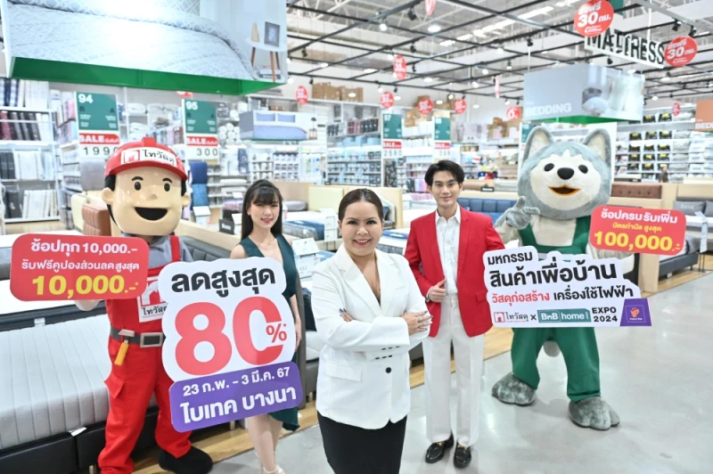 กรุงเทพฯ 14 กุมภาพันธ์ 2567 – ไทวัสดุและบีเอ็นบี โฮม ผู้นำธุรกิจค้าปลีกวัสดุก่อสร้างและสินค้าตกแต่งบ้าน ภายใต้ บริษัท ซีอาร์ซี ไทวัสดุ จำกัด ในเครือเซ็นทรัล รีเทล เตรียมประเดิมงานใหญ่ ‘ไทวัสดุ x บีเอ็นบี โฮม เอ็กซ์โป 2024’ กับมหกรรมสินค้าเพื่อบ้าน ณ ไบเทค บางนา ครั้งแรกของวงการฮาร์ดไลน์ที่รวมสินค้าวัสดุก่อสร้าง สินค้าตกแต่งบ้าน และเครื่องใช้ไฟฟ้าจากเพาเวอร์บาย มาลดครั้งใหญ่ในที่เดียวถึง 80% พร้อมเปิดพื้นที่ชวนลูกค้าสัมผัสกับบูทนวัตกรรมไฮไลต์สินค้ากลุ่มโครงสร้างและสินค้าเพื่อบ้านที่ดีต่อทุกการอยู่อาศัยจากแบรนด์ชั้นนำ